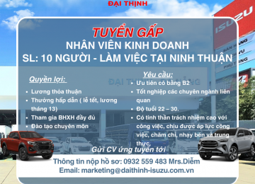 ISUZU ĐẠI THỊNH- CHI NHÁNH NINH THUẬN TUYỂN DỤNG NHÂN SỰ GẤP